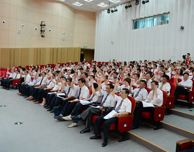 全体教代会正式代表参加会议,离退休老领导、老教授代表、明珠学者列席会议。
