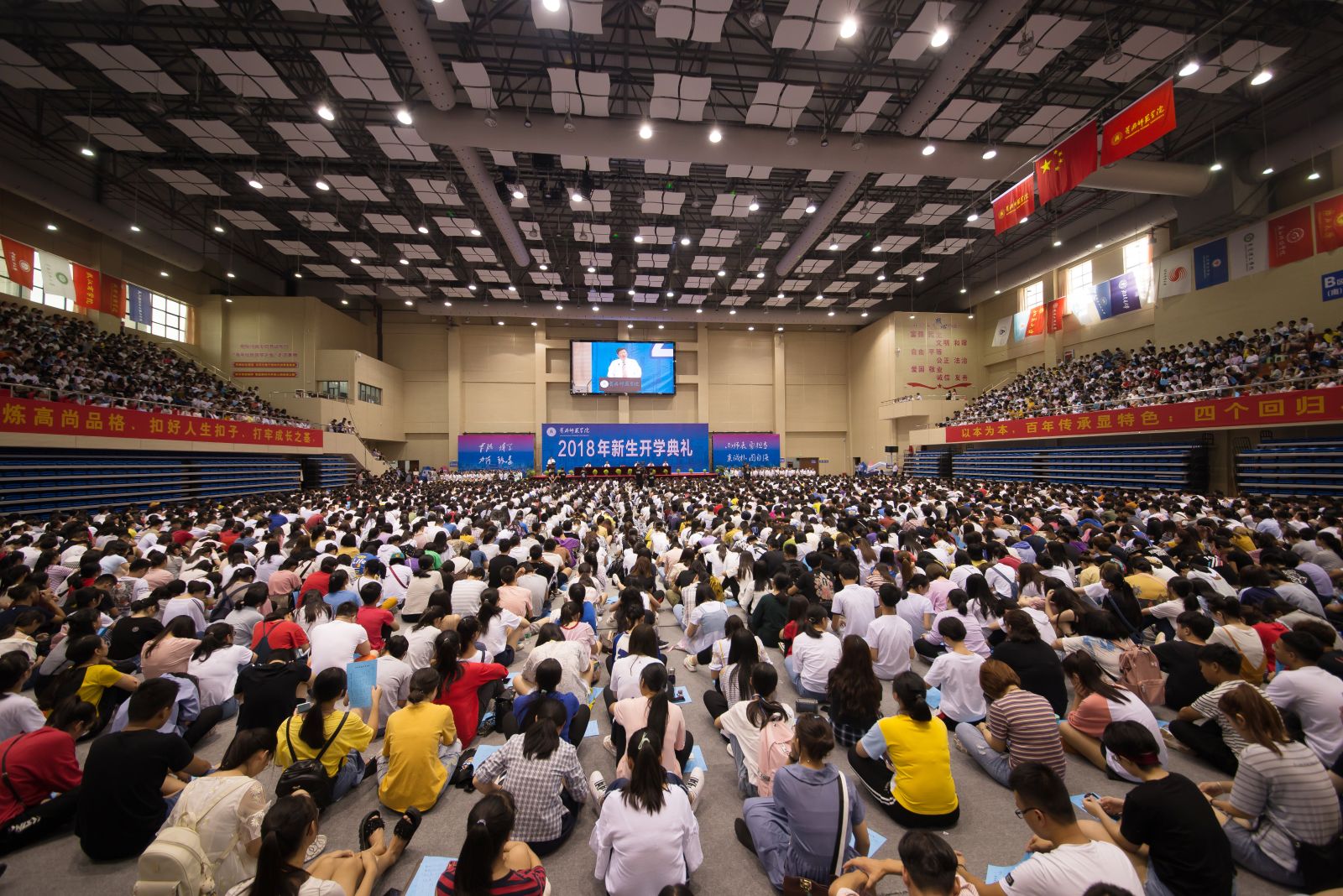 本网讯 9月5日,学校在体育运动中心举行2018年新生开学典礼。与程式化的开学典礼不同,今年的开学典礼以鲜明的主题、互动的形式、全新的理念、宏大的场面吸引了师生们的眼球,呈现出一个“不一样”的开学典礼。