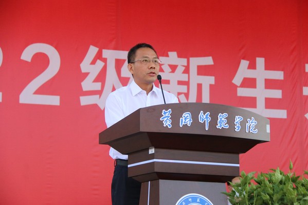 开学典礼在庄严的国歌声中拉开帷幕,教师代表、文学院(苏东坡书院)胡立新教授,校友代表、湖北精诚钢结构股份有限公司董事长孙秋正,在校生代表、 2021级学科教学(语文)教育硕士陈思含,新生代表、生物科学2205班“优师计划”物理最高分吴题同学先后作了发言。胡立新希望2022级新生潜心问道,追求真理;明确方向,努力奋斗;赤子之心,安身立命;学习苏轼,超越自我;孙秋正向2022级新生分享了自己的人生箴言“逐梦唯笃行,奋进正当时”;陈思含同学以“志存高远,脚踏实地;博览群书,勤于思考;知行合一,勇于创新”的要求与2022级新生共勉;吴题同学鼓励2022级新生乘风破浪,志存高远勤思敏学,用理想的风帆承接住新时代的风向,在军训的呐喊与脚步声中走向大学生活。