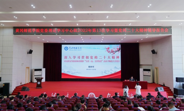 宣传宣讲全面学。在学校校园网、微信公众号等校园媒体设置“聚焦二十大”专栏,推出“师生热议党的二十大”专题,营造浓厚学习氛围。已推送各类学习资讯与成果170条,推出二十一期共计662名师生的热议,其中3名台湾教师在热议中表达了深化两岸融合发展、同心共圆中华民族伟大复兴中国梦的期待。各中层单位利用本单位网站、新媒体等平台设置学习专栏,在办公地公共空间制作党的二十大精神宣传栏。组建校领导、二级党组织书记、理论专家宣讲团、青年学生宣讲团四支宣讲队伍,发挥学校湖北省示范思想政治理论课教学基地作用,把党的二十大精神融入学生必修课《习近平新时代中国特色社会主义思想》概论。校党委理论学习中心组开展2次集体学习,学校党委主要负责人和有关专家分别作了宣讲报告。13个学院党委书记、10个党支部书记已通过专题辅导报告、专题党课、微党课等形式开展了宣传宣讲。向市委学习贯彻党的二十大精神宣讲团推荐4名博士教授参与宣讲工作,鼓励师生党员下沉社区开展学习宣讲活动。11月28日上午,市委书记张家胜来校宣讲党的二十大精神,以“学习贯彻党的二十大精神,奋力谱写全面建设社会主义现代化国家黄冈篇章”为题,与师生代表座谈交流学习体会。