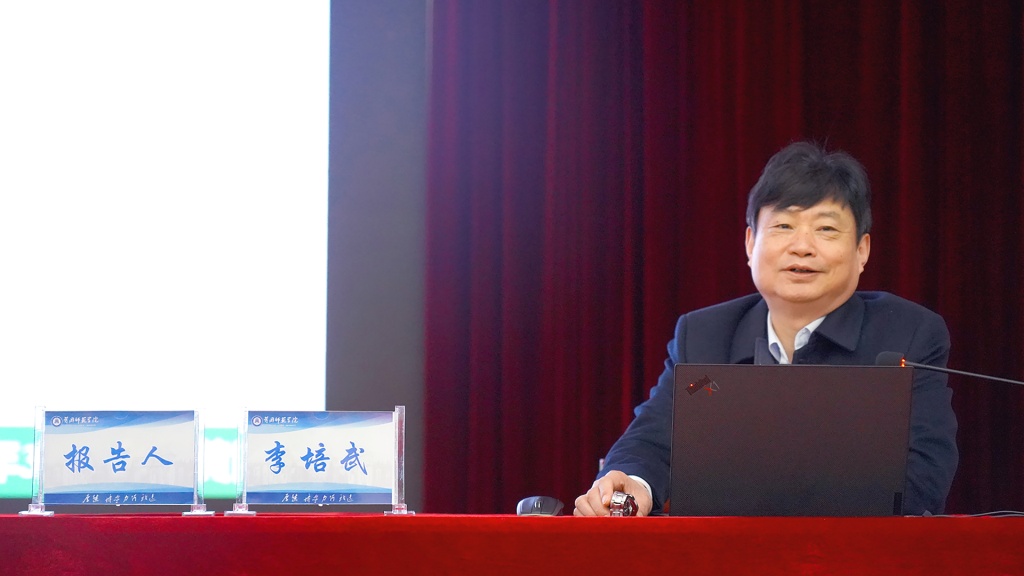 本网讯 2023年3月24日上午,中国工程院院士、中国农业科学院研究员李培武院士应邀为我校师生作题为“食用植物油风味营养与健康”的专题报告。受正在参加黄冈市第六届人大第三次会议的校党委书记陈向军,党委副书记、校长漆昌柱委托,副校长马志斌主持报告会。会前,漆昌柱会见李院士并交流。
