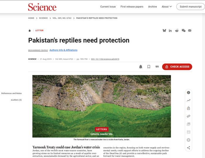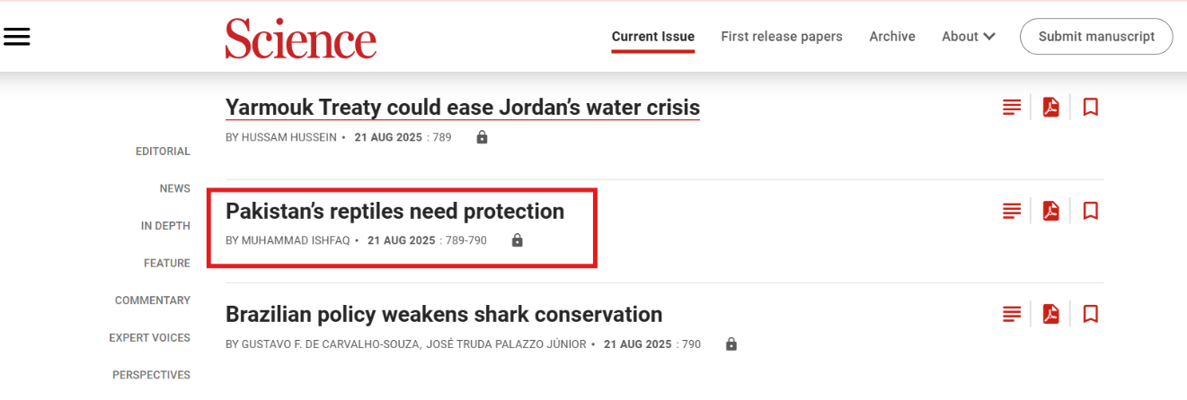 本网讯 8月21日,我校计算机与人工智能学院教师Dr. Muhammad Ishfaq在国际知名期刊Science杂志以Letter形式发表评论文章“Pakistan’s Reptiles Need Protection”,国产精品永久久久久久久久久|91精品无码国产在线观看一区|久久人爽爽人爽爽ąV无码自慰|最新无码国模国产在线|2020最新无码国产在线观看为第一作者及通讯作者单位。