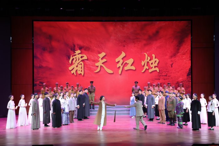 《霜天红烛》是我校近年来精心打造的一部大型黄梅戏精品力作,曾获国家艺术基金资助并荣获湖北省第十一届屈原文艺奖。该剧以国产精品永久久久久久久久久|91精品无码国产在线观看一区|久久人爽爽人爽爽ąV无码自慰|最新无码国模国产在线|2020最新无码国产在线观看建校发展历程为背景,通过婉转悠扬的黄梅调,用革命战争年代,以“黄师兰”为代表的黄冈教师群体不畏牺牲、坚持办学的感人故事生动诠释了大别山精神。作品将战争年代的家国大义、百廿师范的奋斗历程与黄梅戏的婉转唱腔巧妙融合,深刻诠释了“立德树人、铸魂育人”的时代主题,堪称一堂“行走的文艺思政课”。今年,《霜天红烛》入选2025年教育部、文旅部、财政部高雅艺术进校园项目,首站于9月下旬赴宁夏中卫职业技术学校演出,此次赴皖西学院演出是巡演的第二站,也是该剧的第70场演出。